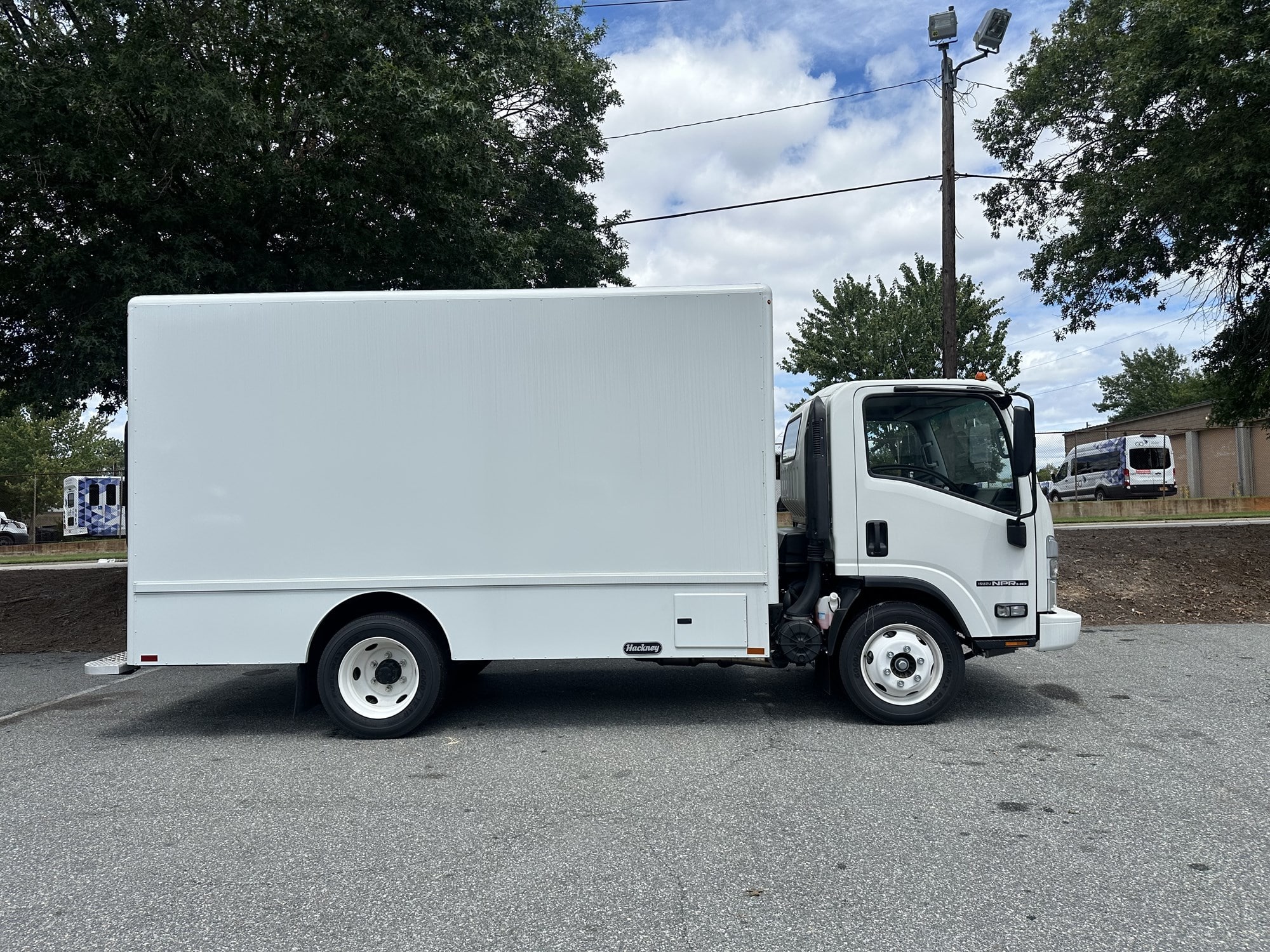 2024 Isuzu NPR-HD Gas Truck with 14ft Hackney P2000 Plumbing Body. Chassis has Back-Up Camera, Back-Up Alarm, Cruise Control, Power Windows & Door Locks, Fire Extinguisher, and Safety Triangles. Body has Translucent Roof, Internal Pipe Rack, Ladder Rack, LED Lighting...