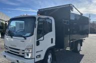 Isuzu NPR Gas HD junk removal dump truck upfitted with 18 yard dump body by Specialty Truck Bodies in Timberlake, NC. Features include 2x6 Backpack Tool Box With Trash Can Holder Attachment, Welded Storage Rack On Top Of Toolbox, Electric Tarp System With Top Mounted Ar...